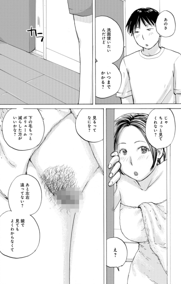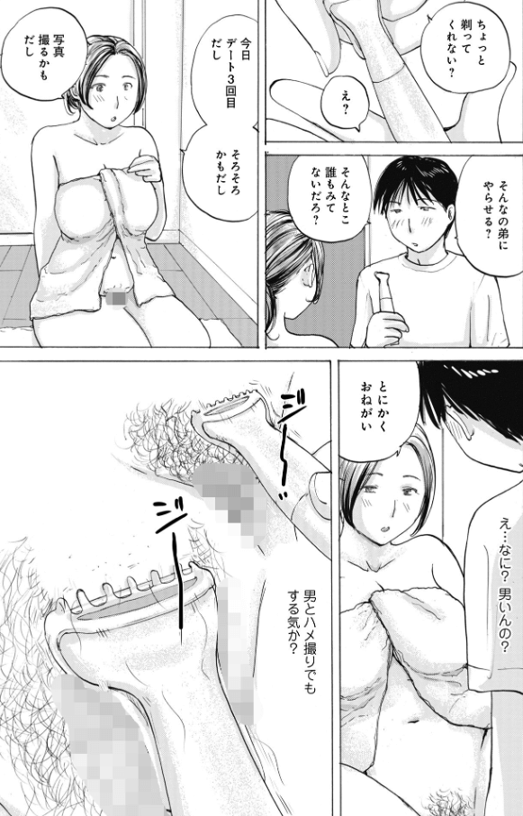 デートの準備に余念のない義姉。弟に剃毛を依頼する。