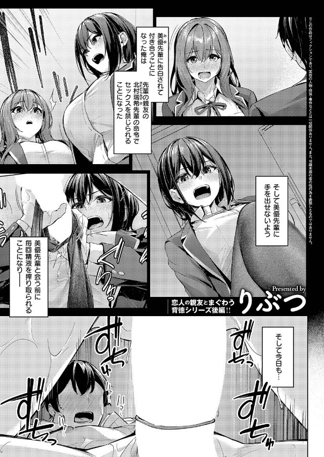 隠れてしていたことを謝った俺と北村先輩に、望月先輩は『三人でえっちすればいいじゃん!!』と持ちかけてきて♪積極女子の超新星★ りぶつ先生が描く、親友の代わりに搾精するイビツな性春シリーズ後編!!