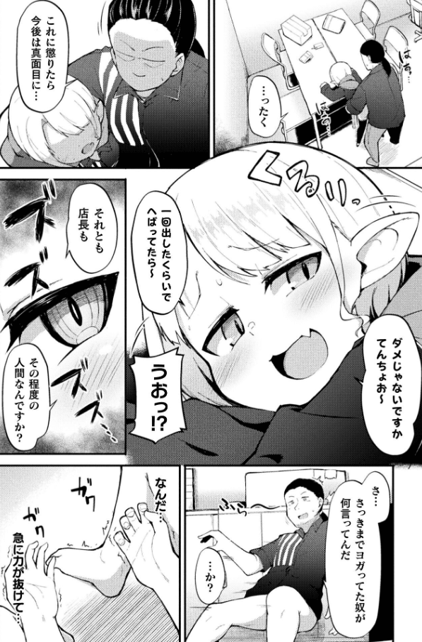 調子に乗ったアルトに堪忍袋の緒が切れた店長は立ちバックで激しく責め立てるが、アルトの正体はサキュバスであり、体力を消耗した店長は濃密なフェラと騎乗位で瞬く間に立場を逆転されてしまい……。