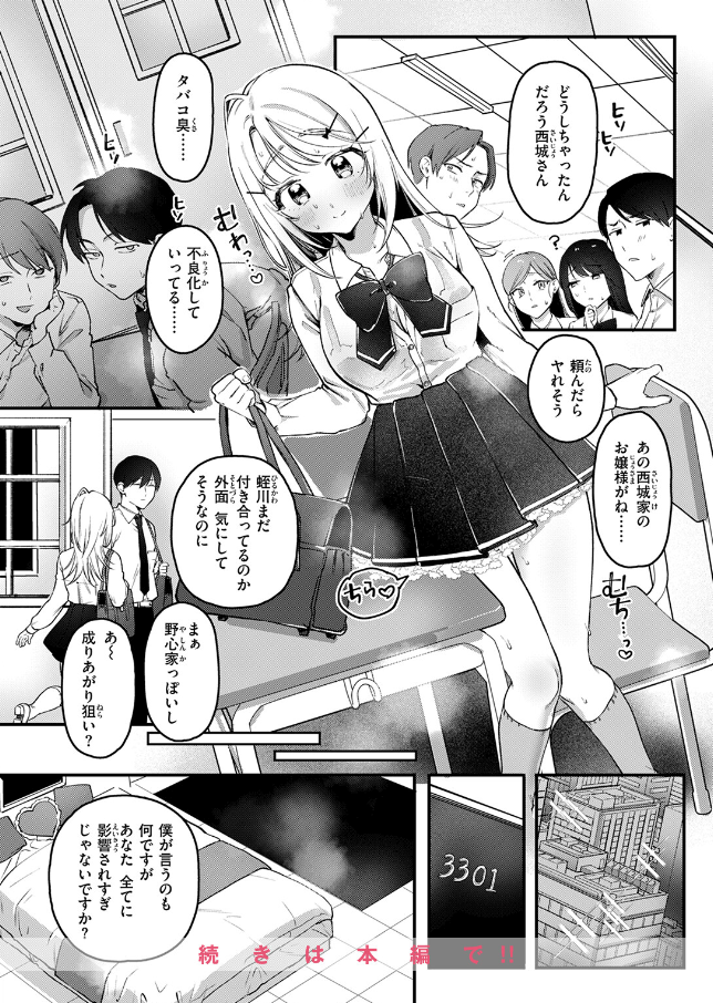 その後も蛭川に求められるままセックス漬けの日々が続き、お嬢様らしからぬ不良の空気をまとっていく寧々子。