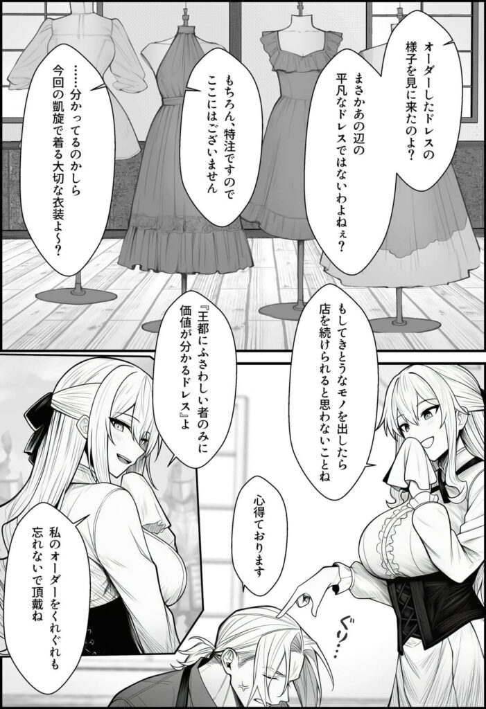 ──王女、民衆の前で‘すべて’を奪われる。横暴な王女に無茶なドレス制作を強いられる装備屋の主人公。