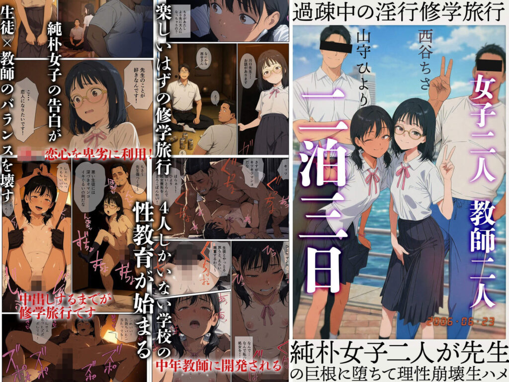 作品名過疎中の淫行修学旅行〜純朴女子二人が先生の巨根に堕ちて理性崩壊生ハメ